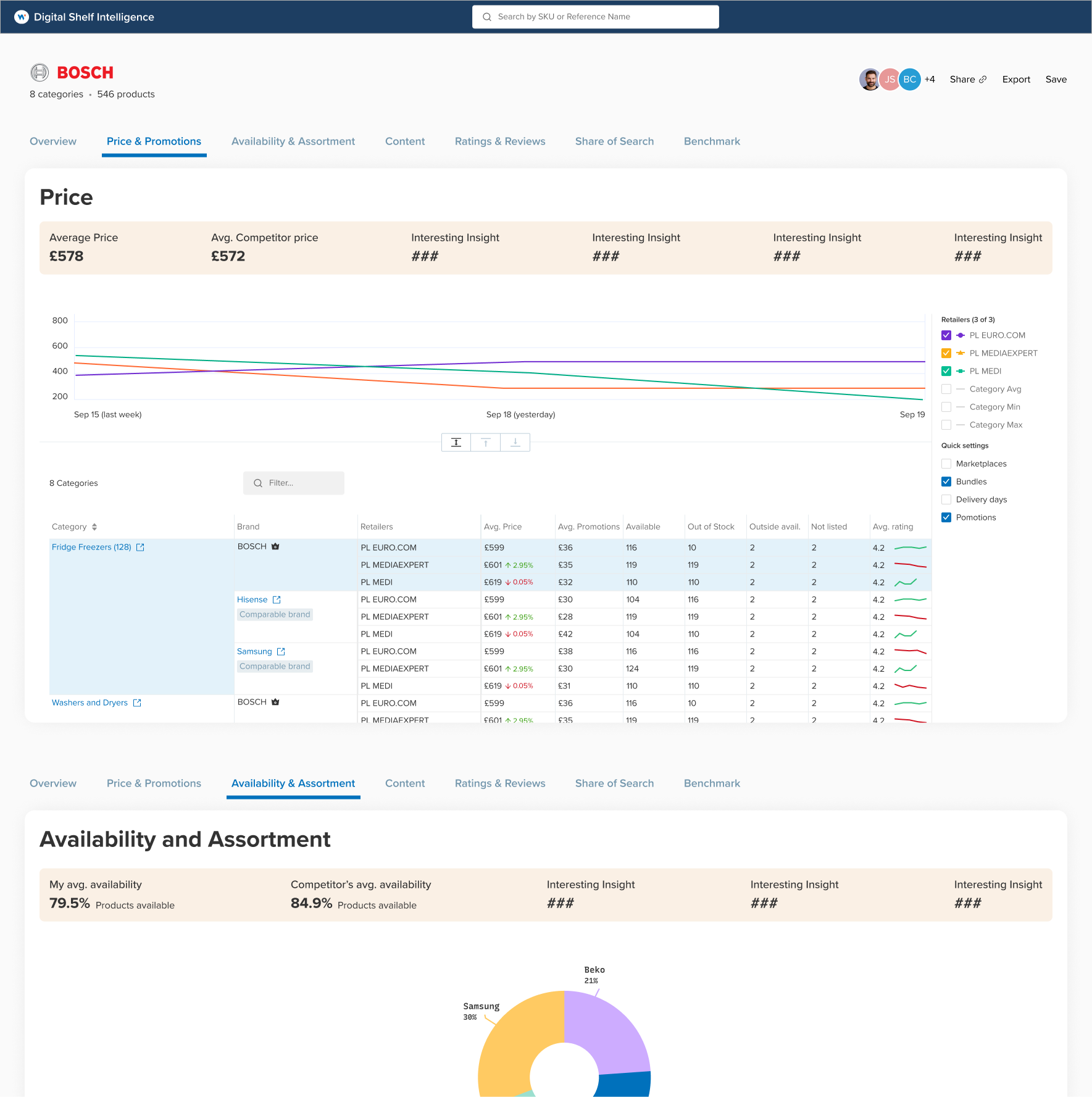 Insights were tailored to where the user was working — whether at the level of a single product, a product category, a brand, or a retailer. This kept information relevant, actionable, and easy to trust.
